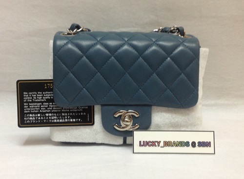 New Chanel Mini Square 7" Blue lamb 70,000 THB last price