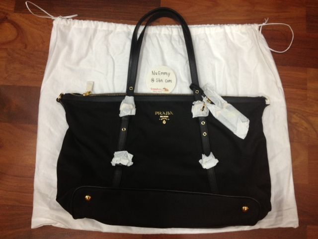 New Prada Shopping Bag สีดำ มีสายสะพายให้ทุกรุ่นค่ะ อะไหล่ทองสุดสวย ดูดีสุดๆ ของใหม่จากอิตาลี มีถุงผ้ากับการ์ดพลาสติกค่ะ