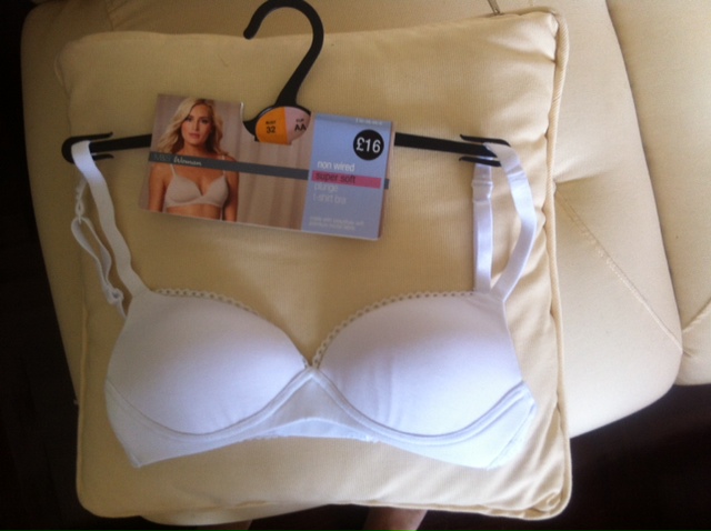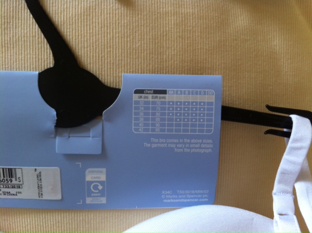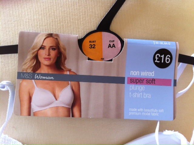 2. ของใหม่อยู่ในแพ็คเลยค่ะ ชุดชั้นใน mark&spencer size32AA แบบไม่มีโครงดูตาราง size ได้ตามรูปข้างล่างค่ะ ผ้านิ่มโคตรๆใส่แล้วประทับใจเลยค่ะ ไม่มีลายเหมาะใส่กับเสื้อยืดเพราะจะไม่เห็นรอยชุดชั้นใน ขายสีเนื้อนะคะ ซื้อมา 16 pound ราวๆ 850 บาท แม่ค้าขาย 450 บาท!!!