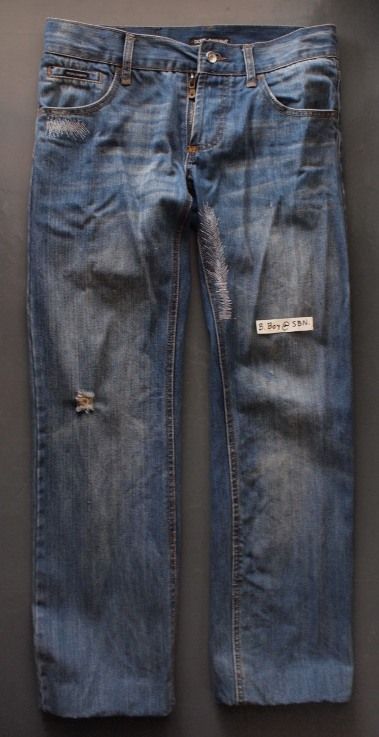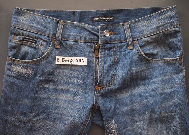 2. กางเกงยีน jeans D & G (Dolce and Gabbana) รุ่นใหม่ ป้ายหลังเป็นเหล็กและหนังแท้ เดินเจาะตัดชุนให้ดูเซอร์ เนื้อผ้าดีหนานุ่มมาก (ไม่เคยตัดขา ปรับขายาว-สั้นได้ คนสูง180ใส่ได้) เอว size 34 นิ้ว (ราคาตอนซื้อใหม่ 12,000 บาท) ขายแค่ 3,400 บาท (Made in Italy)