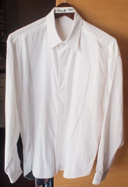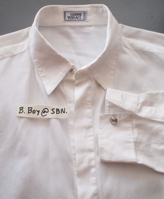 7. Gianni Versace สีขาว ดูสุภาพ ผ้ามี texture สาบเสื้อ 2 ชั้นซ่อนกระดุม (กระดุมตรา Medusa signature) size L(สาบเสื้อ 2 ชั้นซ่อนกระดุม) ราคา 1,900 (Made in Italy)