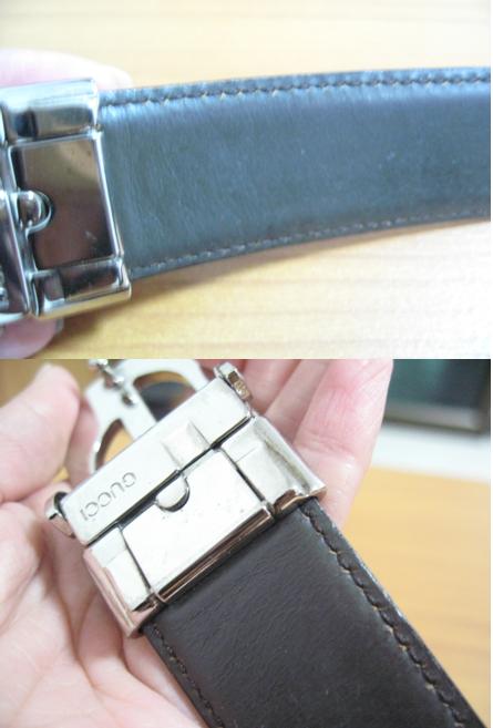 ส่วนตัวหัวเข็มขัด รบกวนถ่ายรูปตรงคำว่า Gucci หน้าตรง ชัดๆ ให้หน่อยค่ะ รูปมุมเอียงๆ อย่างนี้ดูยาก และดู font เหมือนจะไม่แท้ด้วยค่ะ แต่อาจจะเป็นที่มุมกล้อง ลองถ่ายหน้าตรง ปรับกล้องเป็น super macro เพื่อให้ถ่ายใกล้ๆ ได้ชัดๆ ค่ะ