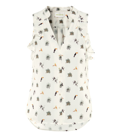 เสื้อลายนก เป็ด ลิง แขนกุดระบายช่วงแขนน่าร้ากมากแบบเดียวกะใบเฟินใส่เลยค่ะ