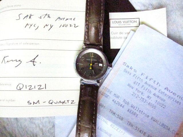นาฬิกา Louis Vuitton Tambour รุ่น Q1212 เก่าเก็บนะคะ สภาพใช้งานทั่วไป กระจกไม่มีรอยใดๆ สายหนังนิ่มแต่ไม่แห้งค่ะ