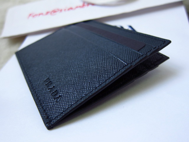 Prada Men cards holder ใส่การ์ดได้ 6 การ์ด หนัง Saffiano สีน้ำเงินกรมท่าค่ะ รุ่นนี้สำหรับคนไม่ชอบพกกระเป๋าสตางค์ใบใหญ่