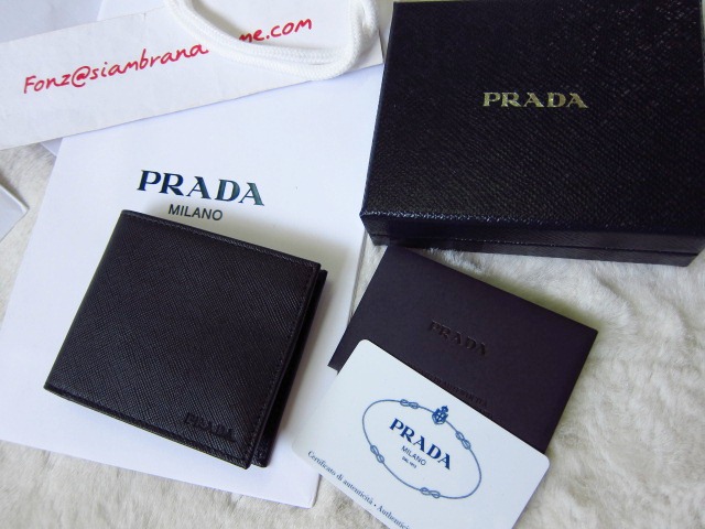 Prada Men Wallet ใส่การ์ดได้ 6 การ์ด หนัง Saffiano สีดำ ค่ะ ช่องใส่เงิน 1 ช่องสามารถใส่แบงค์พันบาทได้นะคะ