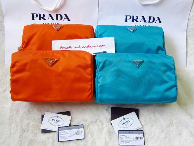 Prada Nylon Cosmetic Bag ไซด์ใหญ่สุดคะนะ เหลือแค่2 สีค่ะ Turquoises กับPapaya ขนาดนี้แทบหาไม่ได้นะคะ ปกติจะเป็น Size เล็กกว่านี้ นี่ใหญ่สุด สามารถใส่ครีม 100ml ได้สบายๆค่ะ Size : 24 x 16.5 x 8.5cm มีซิปเปิด-ปิดปากกระเป๋าและมีช่องซิปด้านในหนึ่งช่องไว้เก็บของด้วยค่ะ