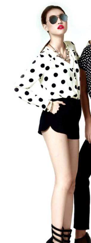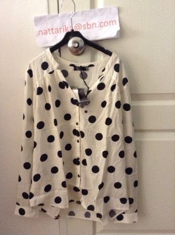 เสื้อลายจุดขาวดำผ้าฝ้ายใส่สบายใส่ขึ้นมาแล้วน่ารักเหมือนนางแบบในรูปเลยค่ะ เวลาใส่ด้านหน้าจะสั้นกว่าด้านหลังหน่อยนึงค่ะ