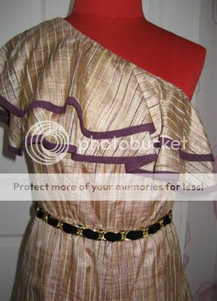 - จัมพ์สูทผ้าซิลค์100% ระบายเฉียงขลิบผ้าสีม่วง Senada freesize ของใหม่ ปกติ 12000B.-->3700B.