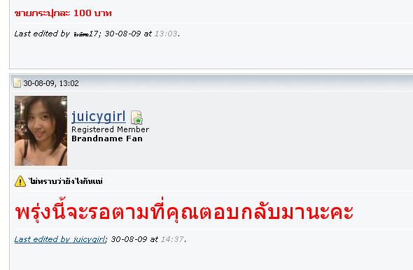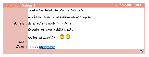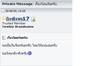 ฉันก็ได้แต่รอ รอ รอ จนถึงวัน อาทิตย์ที่ 30/8/09 ดิฉันได้แจ้งทางหน้ากระทู้ที่คุณ อิทธิพล17 ขายของใน sbn