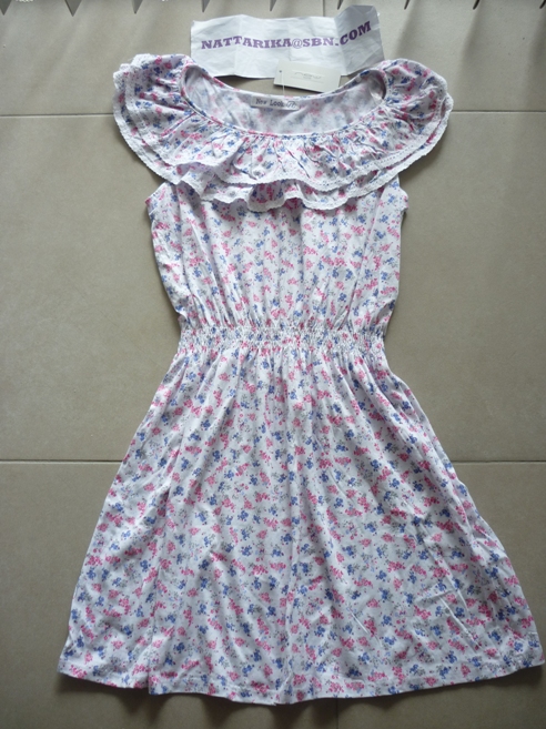 เดรสลายดอกไม้เล็กๆน่ารักๆ คอระบาย จั้มเอว