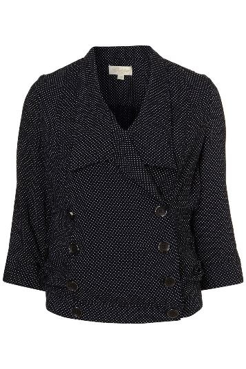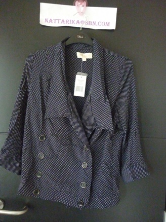 blazerลายจุดน้ำเงินขาวดีเทลกระดุมคู่ด้านหน้าน่ารักๆ