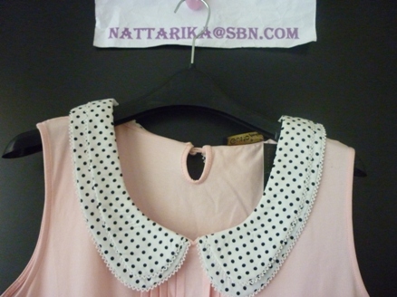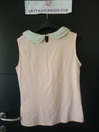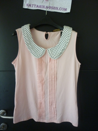 –GUSTA แบรนด์จากสเปน เสื้อแขนกุดสีชมพูหวานๆ คอบัวลายจุดดีเทลลูกไม้สีขาวตรงคอบัว
