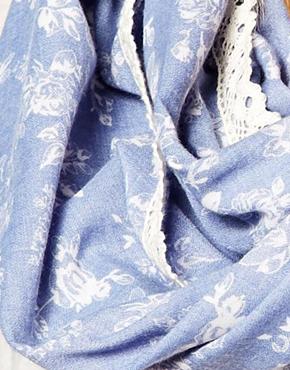 ♥♥– NEW LOOK blue Floral Snood ผ้าพันคอลายดอกไม้สวยโทนฟ้าขาว+ลูกไม้ขาว