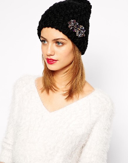 ♥♥– ASOS หมวกผ้าไหมพรมผสมวูลสีดำหนาๆอุ่นๆน่ารัก