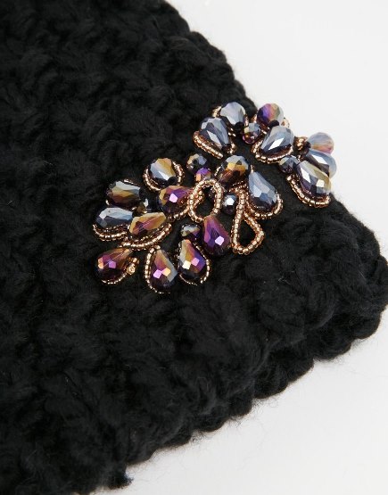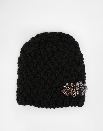♥♥–NEW LOOK หมาวกผ้าไหมพรมผสมวูลสีดำเนื้อแน่นๆดีไซน์คริสตัลดอกไม้ดำสวยน่ารักที่สุด