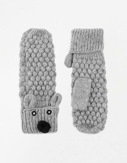 ♥ ♥ASOS ถุงมือผ้าไหมพรมผสมวูลสีเทาหัวน้องหมาน่ารักๆ มาใหม่พร้อมส่ง