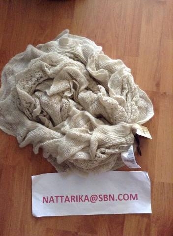 ♥ ♥ OASIS ผ้าพันคอผ้าไหมพรม+ลูกไม้สีครีมแบบน่าร้ากมากมาก ใหม่ป้ายห้อยปกติราคา1590บาท ลดเหลือราคา990บาทส่งฟรีลงทะเบียนค่ะ
