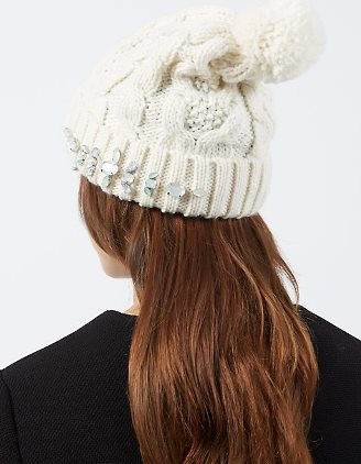 ♥♥–NEW LOOK หมวกผ้าไหมพรมผสมวูลสีขาวคริสตัลใส