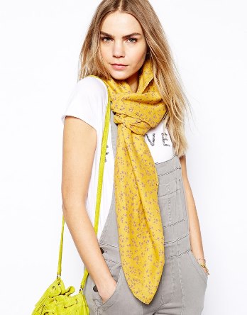 ♥♥ ASOS ผ้าพันคอหลุมไหล่ผืนใหญ่ยักษ์เนื้อผ้าไหมพรม โทนเหลืองดำน่ารัก
