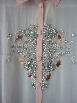 เสื้อผ้าชีฟองโทนครีมชมพูดีไซน์คริสตัลสวยมากกกกด้านหน้า ของจริงสวยหรูน่ารักสุด