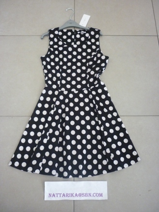 เดรสลายจุดดำขาวทรงน่ารักๆแบบคิมใส่ ซิปซ่อนด้านหลัง พร้อมส่งไซด์ละตัว