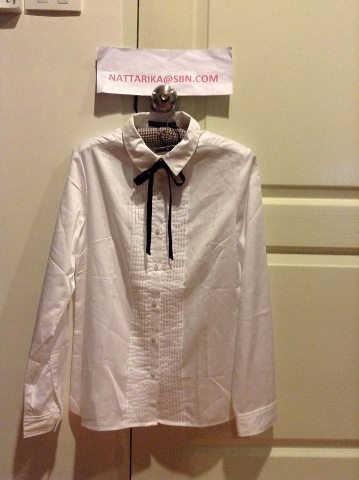 เสื้อขาวผูกโบว์สีดำ (โบว์เอาออกได้ค่ะไม่ได้ทำติดกะตัวเสื้อ) ของจริงน่ารักนะคะใหม่ป้ายห้อย