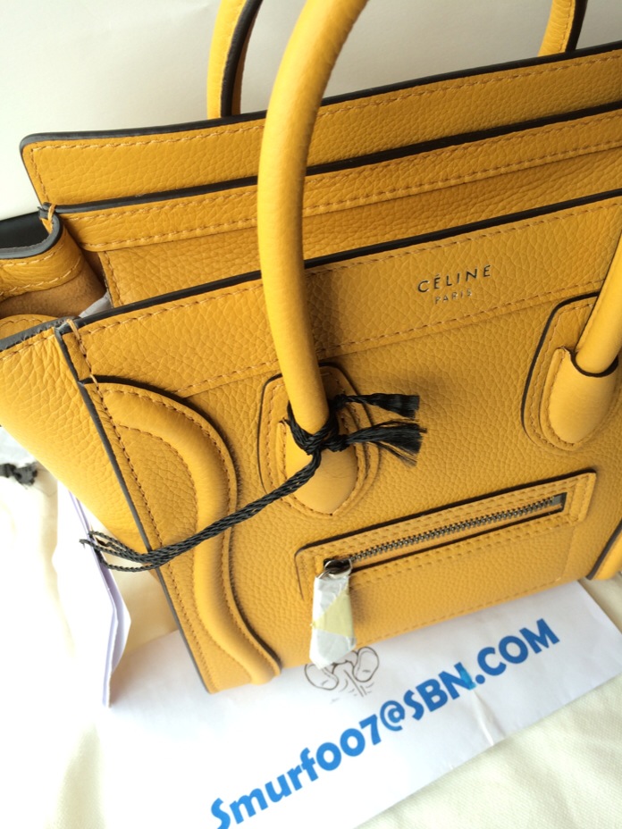 ***NEW Celine NANO Luggage in New Yellow grained leather (All Calf skin) สีเหลือง มัสตาร์ดใหม่! สวยโดดเด่นสุดๆ รุ่นนี้ถึงไซส์จะจิ๋ว แต่จุของได้เยอะมากๆ สามารถใส่กระเป๋าตังค์แบบLong walletได้สบายๆ หยิบของในกระเป๋าก้อง่ายมาก เนื่องจากปากกระเป๋ากว้าง (มีซิปปิดได้) แถมกระเป๋ายังมีน้ำหนักเบาอีกต่างหาก อุปกรณ์ กระเป๋ามาพร้อมสายสะพาย ถุงผ้า แคร์การ์ด ป้ายห้อย ถุงกระดาษจากช้อปCeline