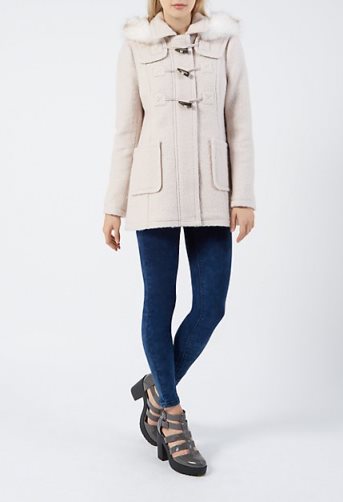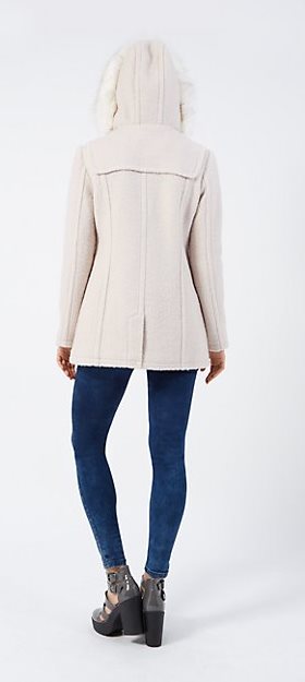 ♥♥– NEW LOOK fur collar coat Size UK 10, 12,14 เสื้อโค้ทสีครีมเบจคอปกขนเฟอร์สวยน่ารัก