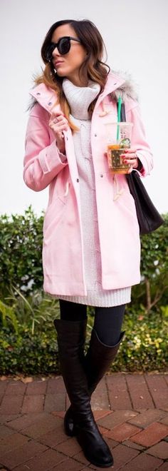 เสื้อโค้ทผ้าวูลสีชมพูหว้านสวยมากกกก มีฮุ้คขนเฟอร์น่ารักสุดๆ ใส่กันหนาวกันหิมะอุ่นมากค่ะ