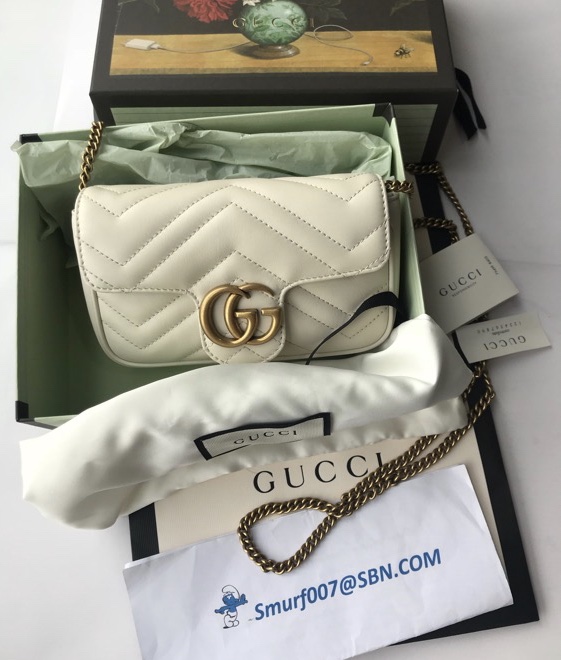 ***NEW Gucci Marmont matelasse Super Mini Bag (White Leather) ***ขนาดจริงกว้าง 18 x สูง 9 cm*** Rare Item!!
