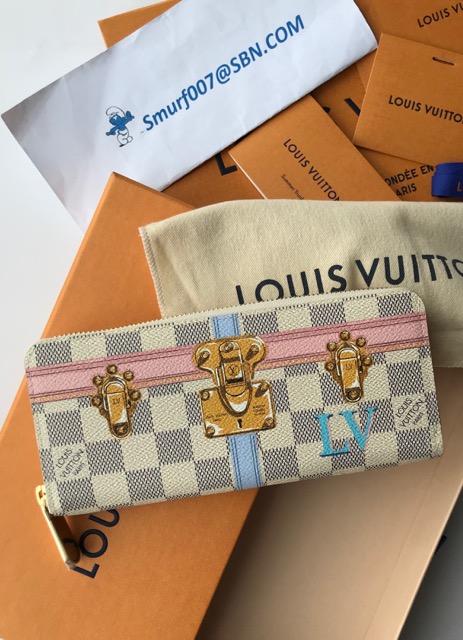 ***NEW LV Portefeuille Clemence Zippy Wallet Azur Summer 2018 Limited Edition !!! มาใหม่ล่าสุด ใบจริงสวยมาก ภายในสีชมพูอ่อน
