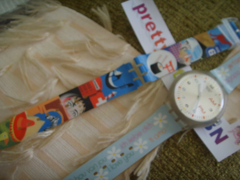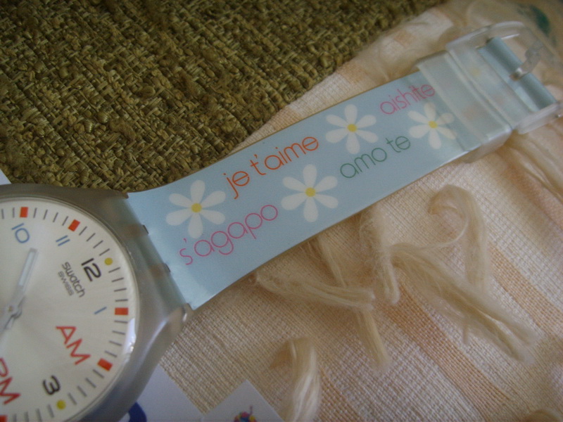 10. นาฬิกา SWATCH น่ารัก น่าใส่ น่าสะสม ตัวนี้คนขายเอาไว้ใส่ไปทะเลค่ะ สภาพเลยค่อนข้างใหม่ มีลูกเล่นคือบอกเวลา 2 ประเทศได้ (GMT) ด้วยการเคาะเบาๆ ที่หน้าปัดค่ะ (แถมยังบอกด้วยว่าเป็นเวลาเช้าหรือหลังเที่ยง) สายฟ้าอ่อนที่อยู่กับตัวเรือนเป็นการบอกรักหลายภาษาค่ะ มีสาย spare part ให้ด้วยนะค่ะลายสดใสบนพื้นสีเข้ม มาพร้อมกล่องนะค่ะ ขายขาดทุนที่ 2,000 บาทค่ะ