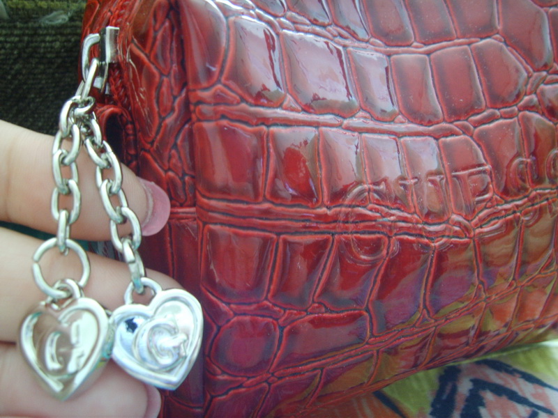 11. กระเป๋า GUESS น่ารักสีแดงสด ยังไม่เคยใช้เลยค่ะ ตัวกระเป๋าเป็นหนังแก้วทำลายเหมือนหนังจระเข้ มีซิปเปิดด้านบน ห้อยด้วยโลโก้ G 2 ชิ้น เอาไว้ใส่เครื่องสำอางค์ เงินนิดหน่อย มือถือได้ค่ะ (เอาไปเที่ยวกลางคืนเก๋ๆ ได้ค่ะ) กว้าง 4 นิ้วครึ่ง สูง 4 นิ้ว หนา 2 นิ้วครึ่งค่ะ นับว่าค่อนข้างใส่ของได้มากทีเดียว ราคา 350 บาทค่ะ