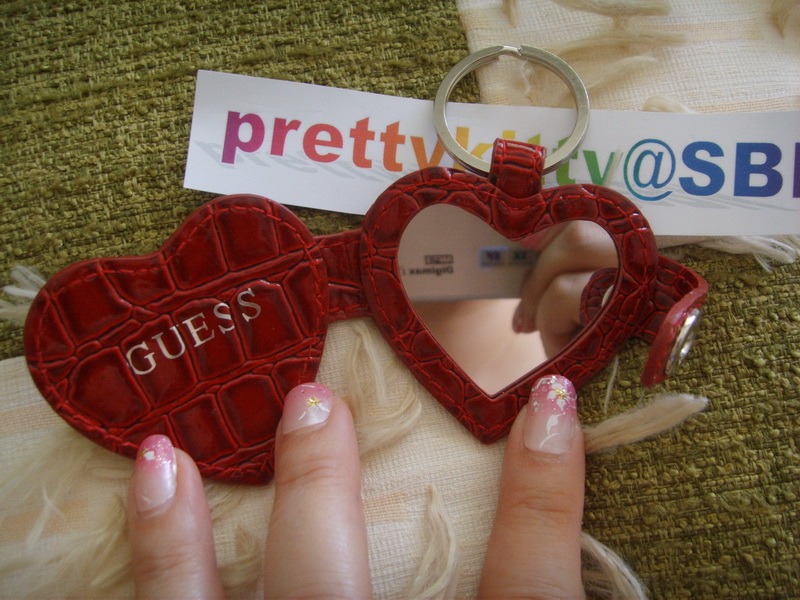 12. พวงกุญแจหัวใจเก๋ไก๋ของ GUESS เป็นหนังแก้วสีแดงสดเหมือนกับกระเป๋าด้านบน เปิดออกด้านในเป็นกระจกค่ะ น่ารักมาก เป็นกุญแจรถก็ดีค่ะ ขาย 300 บาทค่ะ