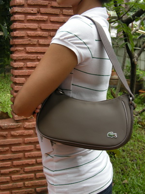23. M40 (0)03 045 LaCoste กระเป๋าทรง Baguette รุ่น New Classic 45 สี Dark Nougat...สีนี้เข้ากับเสื้อผ้าง่ายค่ะ...ด้านนอกเป็น PVC กันน้ำ ด้านในลายทางเขียว-ครีมสไตล์ LaCoste ค่ะ (ไม่ได้ตัด Tag) ราคาเต็ม 3,650 ขาย 2,090 บาท LAST PRICE : 1,699 บาท