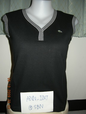 2. TF235Z 6KJ เสื้อแขนกุดสีดำ ขอบลายขาว-ดำ ตัวนี้ไม่ยืดนะคะ เป็นผ้าแบบเดียวกับเสื้อคอโปโลอ่ะค่ะ ใส่แล้วสบายม๊ากมาก สไตล์ LaCoste เหลือแค่ 2 ตัว 2 size ค่ะ T36 (size 36 = S), T38 (size 38 = M)