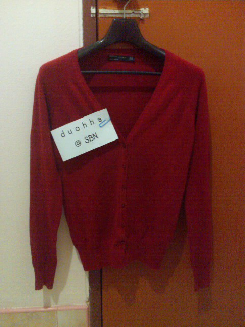 ตัวที่ 5 เสื้อ Zara แบบสั้น สีแดงช้ำ Size m เพิ่งได้มาจากในนี้ ใส่ 2 ครั้ง ซัก 2 ครั้งค่ะ ยังดูใหม่อยู่เลย แต่ขายเพราะอยากได้ตัวยาว
