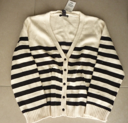 เสื้อคาดิแก้นสีครีมลายดำ แขนยาวใหม่ป้ายห้อย H@M ผ้าเนื้อหนานุ่มใส่สบายอุ่นดีค่ะ มี1ตัวไซด์ s ใส่คลุมเดรสหรือายเดียวเวลานั่ง