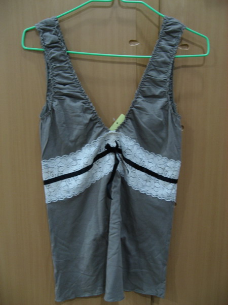 - GrayHounD เสื้อ แขนกุด ซีทรู ลายจุดๆสีดำ คอเฉียง